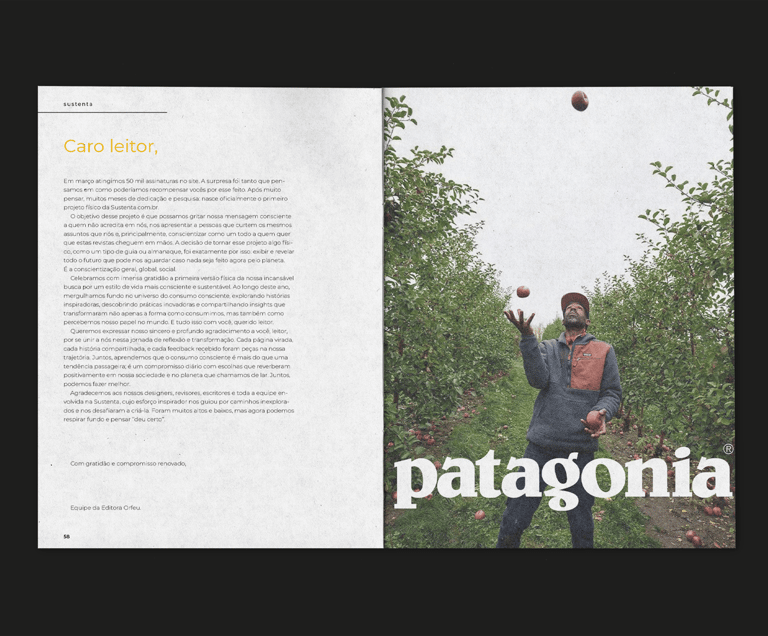 developed as a special edition by Editora Orfeu, the magazine invites a pause — a moment of awareness. through stories on automobiles, beauty, food, and sustainability, SUSTENTA confronts the reader with reality: